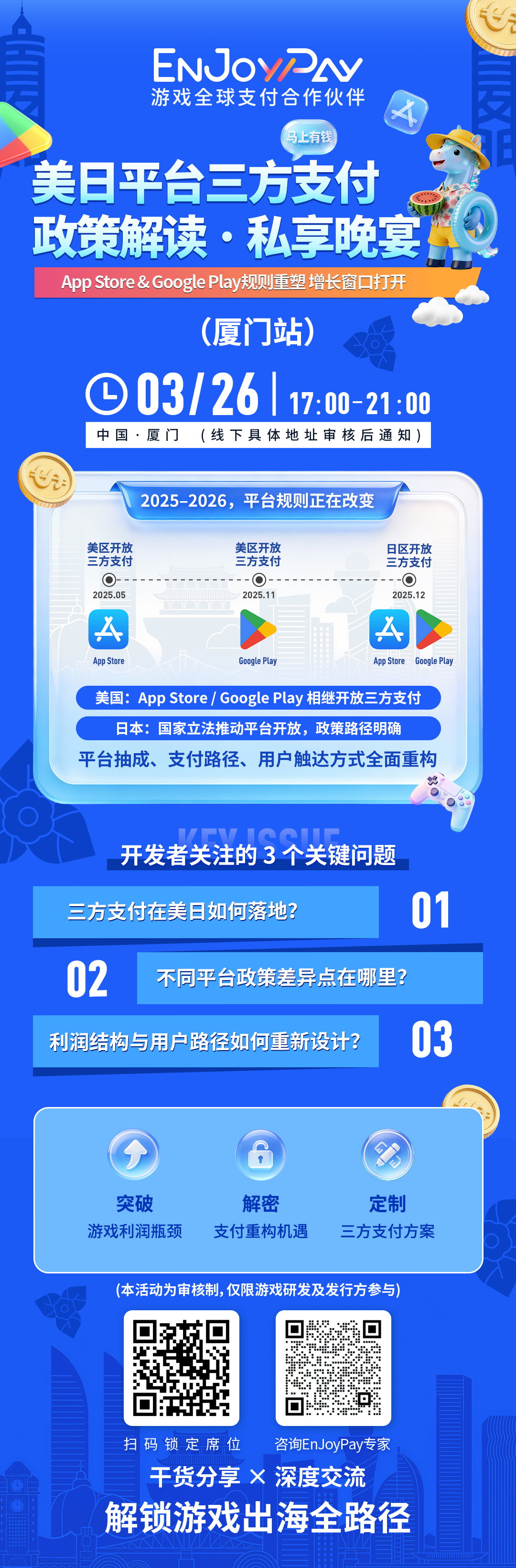 【厦门站】美日平台三方支付政策私享晚宴 - 移动互联网出海,出海服务,海外的行业服务平台 - Enjoy出海